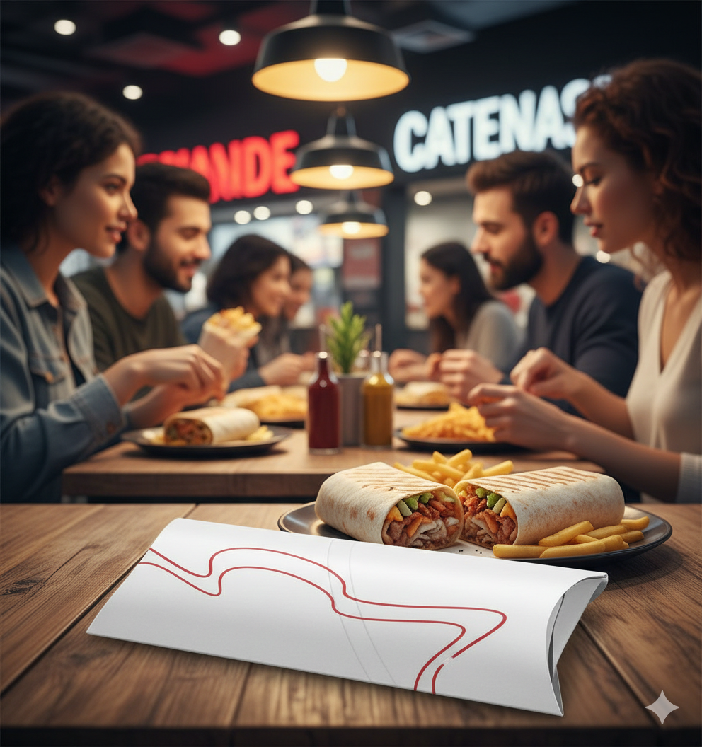 El dürum es uno de esos productos que se disfrutan mejor cuando se sirven bien. Nuestro envase take away dürum está diseñado para mantener el producto protegido, bien presentado y fácil de transportar, tanto para consumo en local como para llevar.